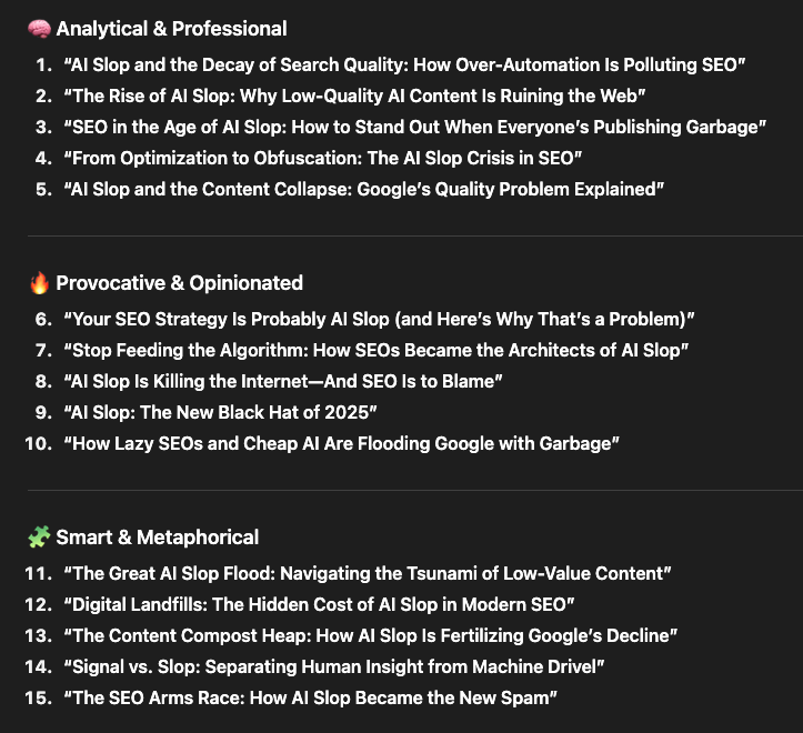 To be fair, the LLMs are really good about mirroring tone, so when I use “slop” and “AI” in the same request, I’m more likely receive the downsides of using AI to create content.